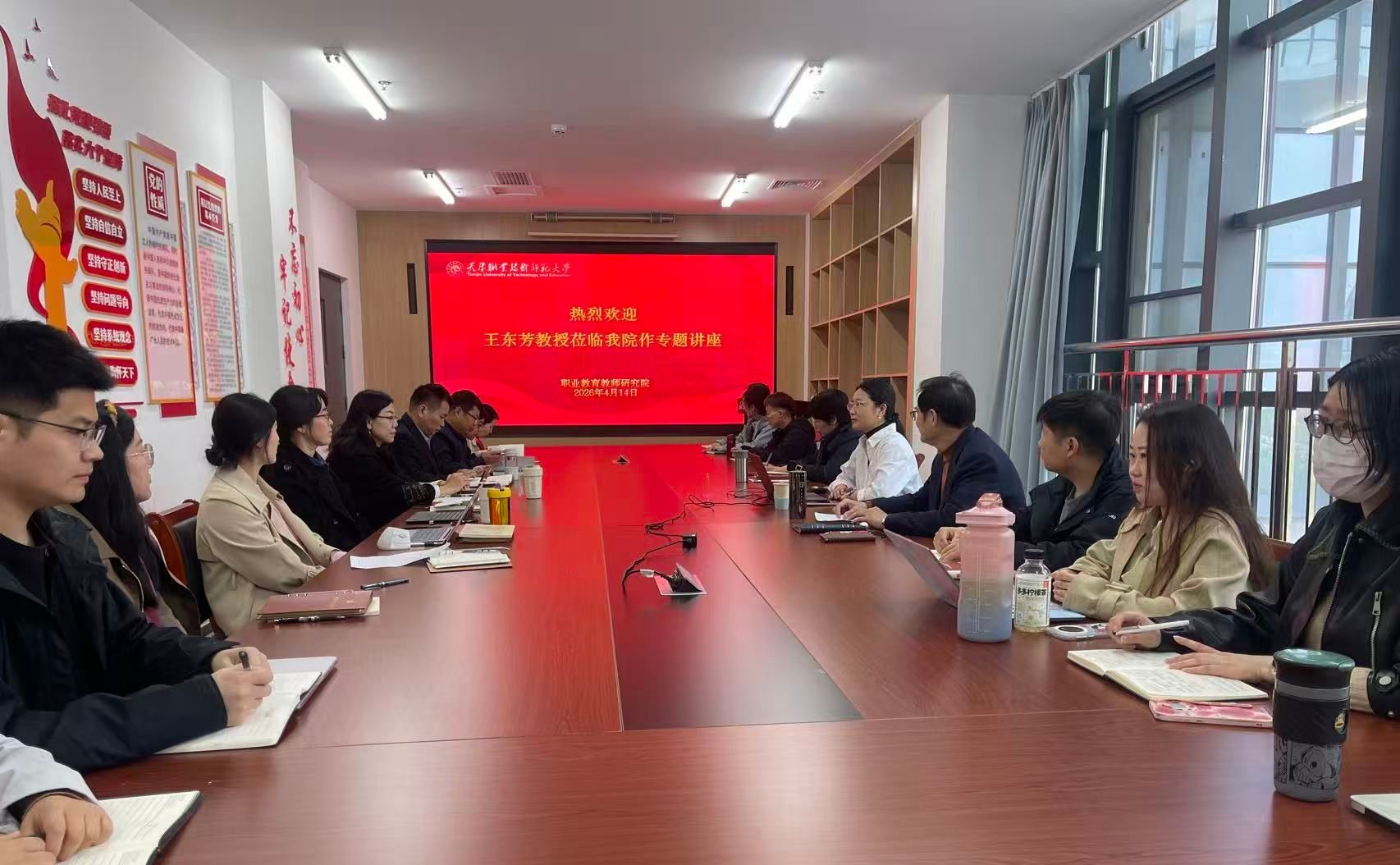 【通讯员 崔丹】为进一步提升教师科研能力,推动教育科学研究成果转化,4月14日下午,职业教育教师研究院(以下简称“职研院”)特邀国家青年人才、天津师范大学博士生导师王东芳教授作题为“让研究‘落地有声’:从教育科学研究到资政成果转化”的学术讲座。职研院全体科研教师及我校部分硕博士研究生参加。讲座由职研院李梦卿教授主持。